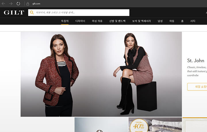 브랜드의 특별 할인을 진행하는 일종의 세일 프로모션 사이트로 회원가입 하나로 모든 메일 서비스를 받아볼 수 있다. 업데이트 되는 정보를 타고 원하는 제품을 저렴하게 구매할 수 있는 특권을 누려볼 것.