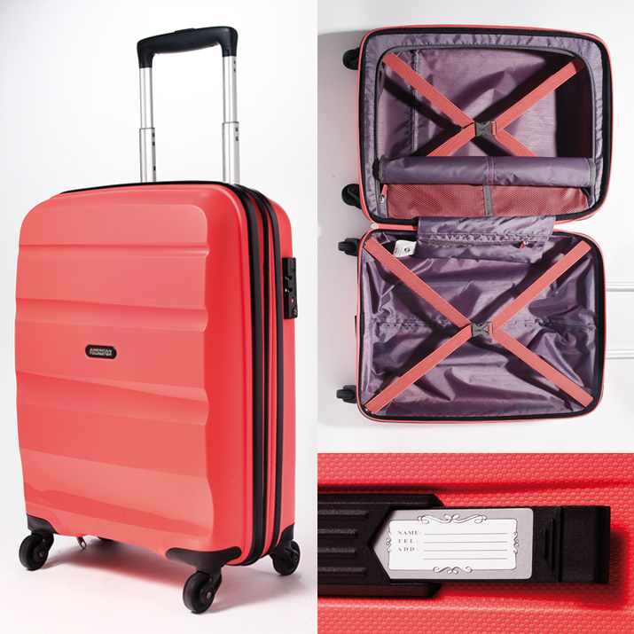 국민 캐리어로 자리 잡은 아메리칸 투어리스터의 하드 케이스 트렁크. 깔끔한 보디 디자인과 상큼한 자몽 컬러로 여심을 저격했다. 확장 가능한 이중 지퍼와 핸들 바로 실용성을 강조함은 물론 내부의 고정용 밴드로 디테일을 더했다. 공간 분리형 구조와 뒷부분의 깨알 같은 디테일도 매력적.
