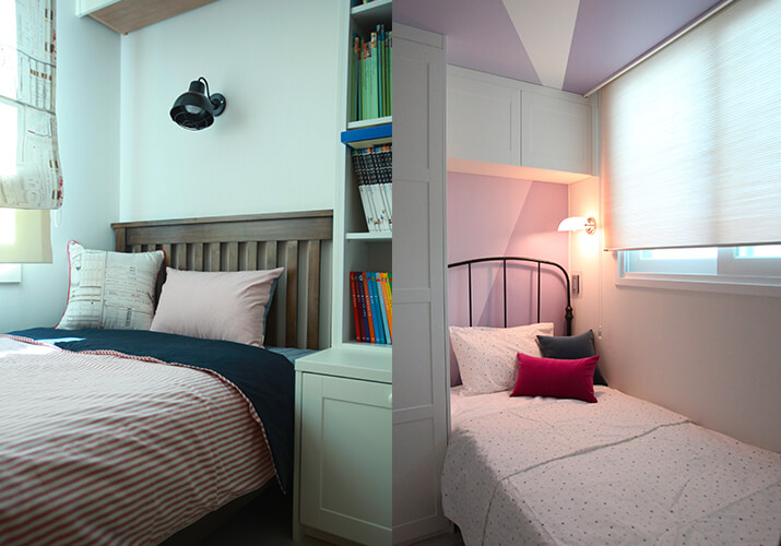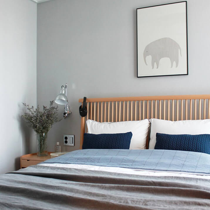 보통 침실 옆 탁자에 스탠드 조명을 올려두고 사용하죠? 이제는 벽등에 주목해보세요. 침대 주변벽에 램프를 설치해서 취침용 또는 독서 용도로 사용할 수 있어요. 어떤 디자인이냐에 따라 심미적인 면모도 발휘되고요. 설치할 때는 스위치가 벽등과 가까이 있어야 한다는 점을 간과해서는 안 되요. 멀리서 등을 켜고 끄는 것이 번거로운 탓이죠. 또 침대에 누웠을 때 조도가 너무 밝아서 눈이 부시지 않도록 조명 각도와 설치 위치를 고려해서 설치해야 해요. 이케아에도 저렴하고 예쁜 벽등들이 많아요. 보통 전선에 스위치가 달려있는 형태죠. 매립이 어렵다면, 밖으로 노출되는 전선을 숨기거나 아예 디자인 포인트로 삼아 스타일링해보세요.