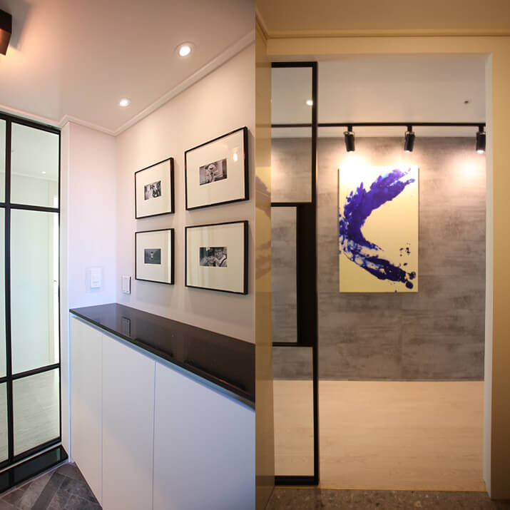벽면에 액자 시계 오브제를 걸었을 때 천장에서 스팟 조명으로 빛을 주면 오브제와 공간이 빛나죠. 갤러리에서처럼 작품을 걸고 조명을 설치한다면 공간에 리듬감을 줄 수 있고요. 강조되는 부분이 생기는 거죠. 또 단조로울 수 있는 벽에도 빛을 더하면 질감과 컬러가 한층 부각되죠. 스폿 조명은 천장형 LED 할로겐부터 레일형 스폿 조명까지 여러 가지 종류의 램프로 다양한 연출이 가능해요. 천장이 아닌 벽에 조명을 심어 간접 조명으로도 하일라이트를 줄 수 있어요.