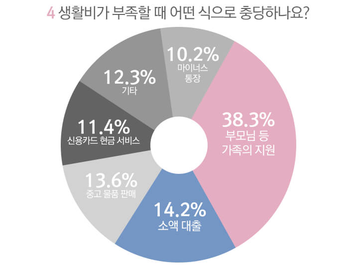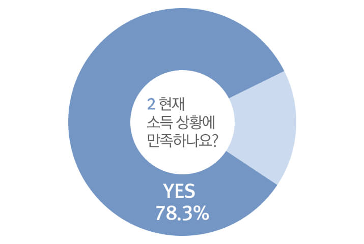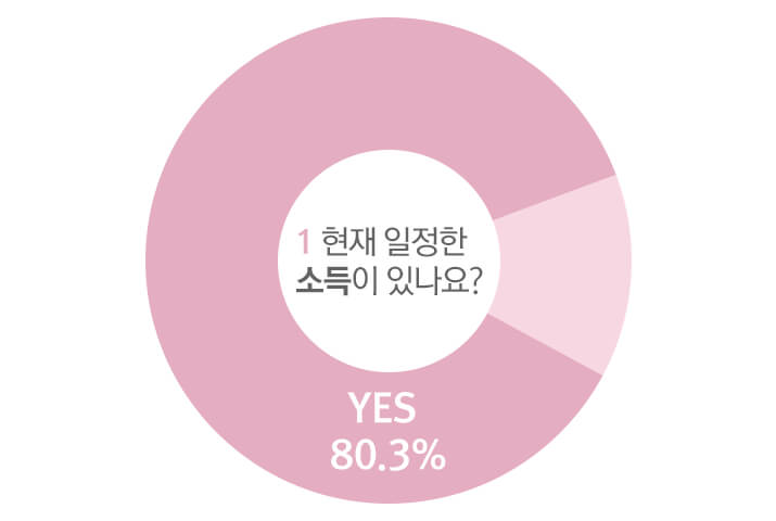 2015년 통계청에서 발표한 조사 결과에 따르면 우리나라 여v성 경제 활동 참여 인구는 총 11,370,000명으로 과거에 비해 큰 비중을 차지하고 있으며, 해가 거듭됨에 따라 점차 증가하는 추세다. 하지만 코스모의 설문조사 결과 일정한 소득이 있다고 응답한 이들 중 정규직은 57.2%, 계약직은 21.1%, 파트타임직이 16.2%로 경제 활동 참여율이나 참여 의사에 비해 안정적인 기반을 갖춘 이들은 그리 많지 않은 것으로 드러났다. 이 밖의 소득원으로는 “부모님, 남편 등 가족의 지원”, “오피스텔 월세 등 부동산 투자에 의한 소득” 등의 답변이 있었다.