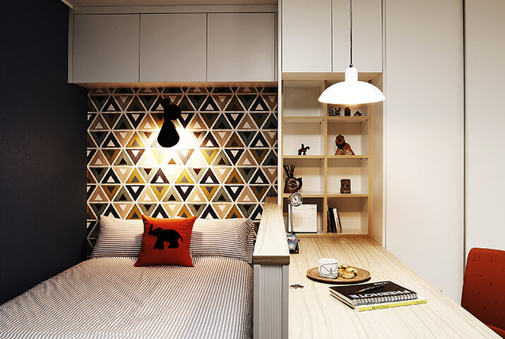 벽지의 세계는 무궁무진합니다. 종이에 컬러와 패턴을 인쇄한 것인데, 신기하게도 원단, 석재, 나무, 페인팅 등 다양한 인테리어 자재의 느낌을 살려내죠. 벽면 전체 또는 벽 한 면을 패턴 벽지로 시공하면 큰 비용을 들이지 않고도 다양한 질감의 벽이 생겨요. 특히 이미지월이나 아트월을 하고 싶지만 도배 밖에 할 수 없는 상황이라면 괜찮은 패턴 벽지를 이용해보세요. 공간이 특별해진답니다.