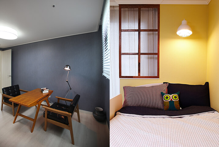개성 있는 벽을 만들 것이냐, 아니면 가구나 소품을 돋보이게 하는 기초적인 벽을 만들 것이냐, 고민해야 합니다. 현재 마감재로 사용된 창문(샷시), 방문, 몰딩, 걸레받이, 바닥재 등을 교체하지 않고 벽지만 새롭게 작업할 경우, 색상 선택에 더 신중을 기해야 하죠. 컬러가 상충하여 원하는 느낌이 나오지 않을 수 있으니까요. 반드시 기존 요소들을 고려해 컬러에 대한 고민도 필요합니다. 기본적으로 벽지는 다양하게 골라 서로 매치하는 것보다 한 가지로 통일하는 편이 버려지는 분량을 줄일 수 있어요. 훨씬 경제적이죠. 소재도 크게 고려해야할 항목이죠. 실크 벽지, 합지 벽지, 친환경 벽지 등 소재에 따라 시공 방법과 인건비에 차이가 있어요. 벽지 시공 전에 샘플을 보고 마음에 드는 종류를 고르기 전에 자신의 집에 맞는 벽지, 예산, 시공하려는 공간의 느낌 등을 파악한다면 후회할 여지를 줄일 수 있을 거예요.