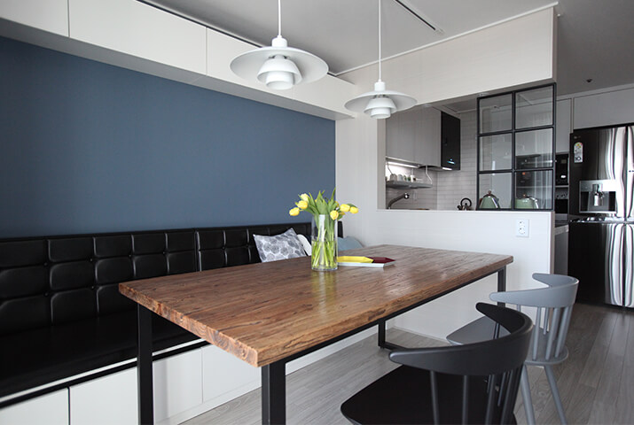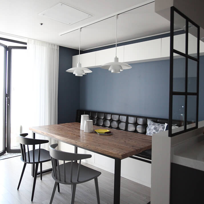 집전체를 페인팅 하면 가장 좋겠지만, 벽지 위에 그냥 칠하는 페인트가 아닌 이상은 목공작업도 필요하고, 칠하도 작업과 상도작업등 제대로 작업을 하려면 인건비부터 시간이 만만치 않게 들어갑니다. 집의 포인트로 생각한 벽 일부만 공사할 때 목공작업을 한다던지, 또는 벽지 페인트를 이용해서 컬러를 넣어보세요 집에 생동감을 불러일으킬 수 있어요. 이때 중요한 것은 페인트 컬러를 고를 때 주변 가구와의 컬러 조화를 꼭 생각해야 합니다.