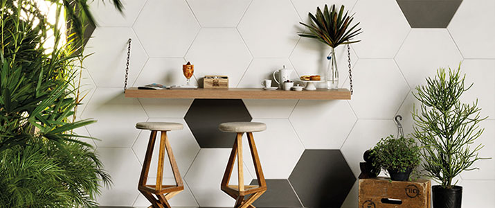 사각형 일색이던 타일 모양이 요즘엔 생김새도 다양해졌죠. 그중 인기를 끌고 있는 것은 바로 육각 타일. 심플한 디자인의 육각 타일도 본래 제 모양이 특이하다 보니 시공했을 때 색다른 느낌을 낼 수 있어요. 육각형 타일은 작은 크기부터 큰 것까지 다양한 사이즈가 있어 아기자기한 느낌부터 모던하거나 우아한 스타일까지 연출할 수 있답니다.