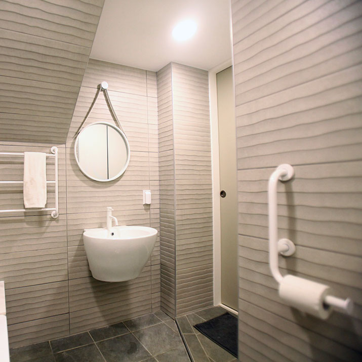 시공이 까다롭긴 하지만 시공을 하고 나면 내구성이 좋고 물기에 강하며 오염 또한 잘 닦이기 때문에 벽면이나 바닥, 가구할 것없이 다양한 시공을 시도할 수 있어요. 예전에는 화장실이나 다용도실처럼 물 닿는 공간에 광택이 있는 타일을 선호했다면, 요즘은 광이 거의 없는 무광 타일을 활용해서 고급스러움을 더하고 있어요.