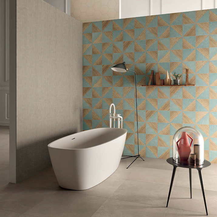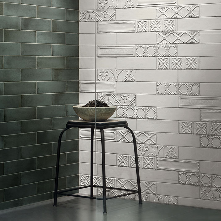 솔리드 컬러에 쉐이딩 효과를 준 제품 ‘에덴(Eden)’의 오타니오와 데코 타일을 매치한 사례. 유로세라믹