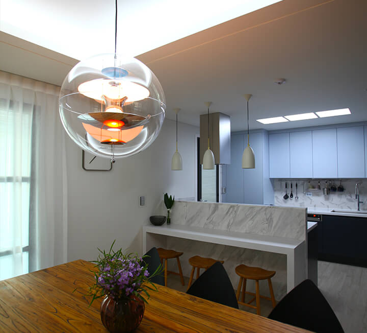 오프 화이트부터 애쉬컬러까지 다양한 색상을 믹스매치할 수 있는 ‘식스’의 시공사례. 윤현상재