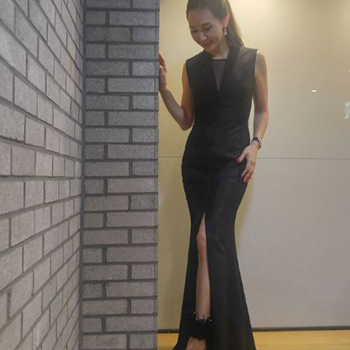 <2017 MAMA IN HONGKONG> 시상식 무대로 오랜만에 등장한 이영애. 소매가 하나 없는 케이프 스타일의 블랙 드레스는 그녀만의 단아하고 이지적인 분위기를 담아내는 데 적격이었다.