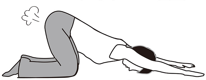 요가에서 ‘고양이 자세=방귀 잘 나오는 자세’로 소문이 자자하다. 기어가는 자세에서 두 손과 무릎을 어깨너비로 벌려 자세를 잡고, 배를 내밀어 허리가 휘어지게 한 후 10초간 자세를 유지한다. 이 자세는 가스 배출에 효과가 있을 뿐만 아니라 허리와 등 근육 스트레칭, 척추 운동에도 제격이다. 시간 날 때마다 틈틈이 해볼 것.