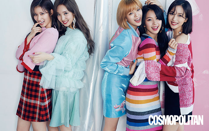 (사나)스커트 45만원 타라자몽. 귀고리 2만7천원 타티아나. 톱 스타일리스트 소장품. (나연)블라우스, 드레스 모두 가격미정 스타시카. 귀고리 9만5천원 핫듀. (정연)재킷 1백40만원대, 스커트 55만원대 모두 모스키노. (채영)드레스 10만9천원 갭. 귀고리 스타일리스트 소장품. (미나)니트 톱 가격미정 자렛. 스커트 13만5천원 코스. 귀고리 7만8천원 에르게.