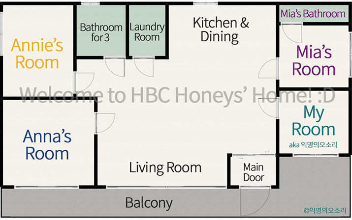 그날로 애니네 집을 보러 갔다. 부엌과 화장실, 세탁실 겸 창고는 공용으로 쓰고 방 네 칸 중 한 칸을 내가 쓸 수 있단다. 내 방은 가장 작은 대신 햇볕이 잘 들고, 창문을 열면 하늘이 보이는 데다 월세도 제일 저렴했다. 널찍한 거실은 물론, 원룸에서 살면서 고기 한 번 시원하게 못 구워 먹었던 게 못내 서러웠던지라 큰 부엌과 시원시원한 환기 시설도 마음에 들었다. 같이 사는 친구들도 모두 믿을 만했다. 심지어 위치도 내가 살던 집 바로 옆 블록이라 이사도 손쉬웠다. 이 모든 것이, 마치 처음부터 계획된 것처럼 순조롭게 진행됐다. 성격도 문화도 생각도 다른 4명이 함께 살다 보면 분명 별별 일이 다 생기지만, 그래도 무탈히 잘 지내고 있는 우리 넷. 올 크리스마스를 다 같이 솔로로 보낼까 봐 걱정되는 나의 동거인들은 다음과 같다.