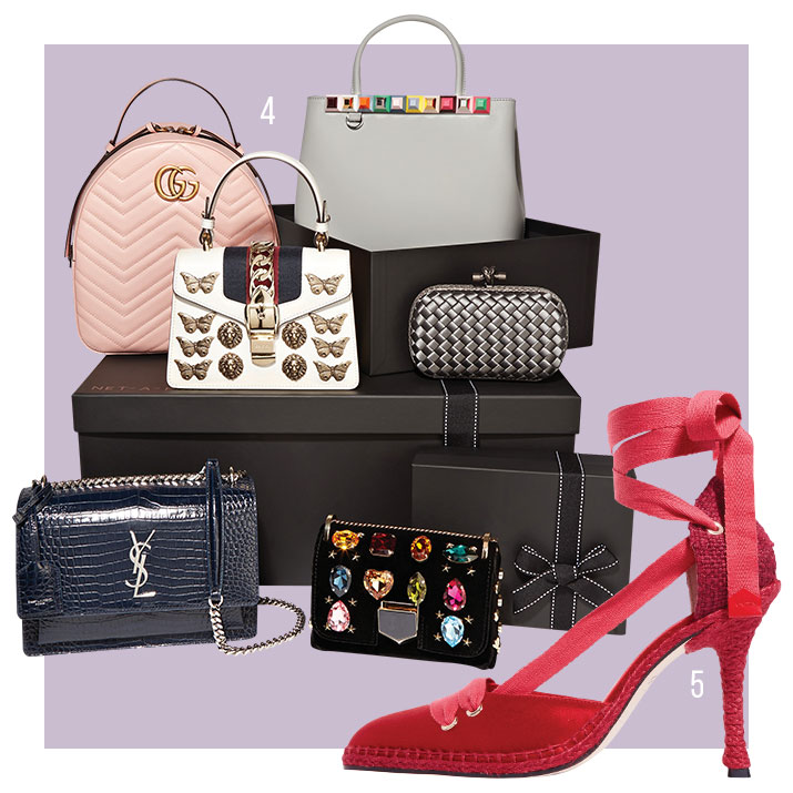4 네타포르테의 기프트 패키지와 다양한 핸드백.
