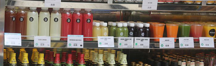 실온 보관 스무디 즉 냉장보관이 아닌 스무디는 피해야 한다. 이런 제품들은 강하게 저온살균 되어 영양소는 없고 방부제가 함유되어 있을 가능성이 크다. 반대로 냉장 보관 된 제품들을 믿어도 된다는 말은 아니다. “신선한” 스무디라고 광고하는 제품들이라 해도 겉 포장의 영양소 함유 정보 등을 반드시 확인해볼 것. 음료가 초록색이라고 해서 다 몸에 좋은 것은 아니다.