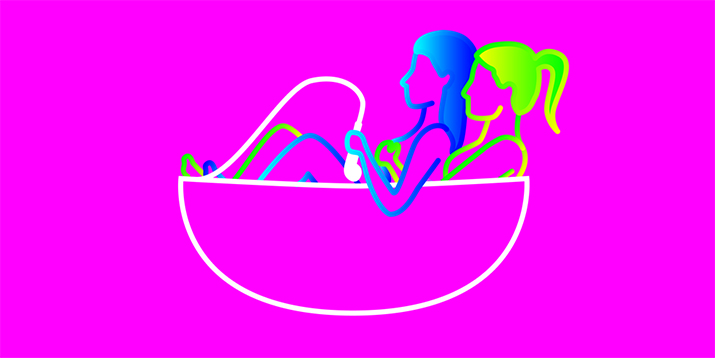 파트너의 다리 사이에 누워 샤워기 헤드를 사용해 당신의 다리 사이로 아주 섹시한 물줄기를 흘려보내자. (다소 강할 수 있으니, 샤워기는 당신이 잡고 주도할 것) 상대방은 당신의 가슴을 손으로 감싸거나 당신의 귓불에 키스하면 된다. 당신은 그냥 머리를 상대방의 가슴에다 기댄 채 황홀한 기분을 느껴라. 물줄기가 아니라도 손으로 애무를 하거나 부드러운 클리토리스 마사지로도 효과를 볼 수 있다.