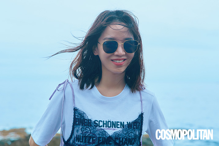 캐미솔 11만9천원, 티셔츠 5만9천원 모두 나이스크랍. 선글라스 7만5천원 휠라.