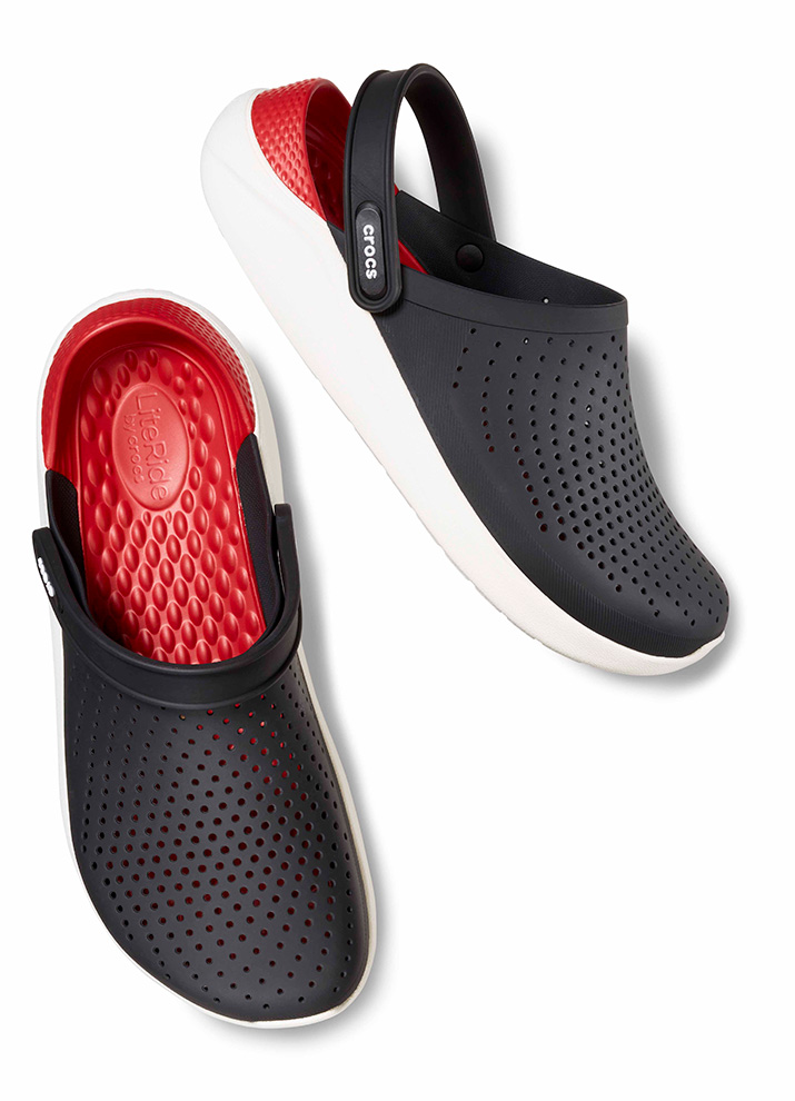 라이트라이드™는 어딘가 모르게 더 세련되고 시크하다고 할까요. 레드, 블랙 같은 배색으로 스포티한 느낌도 있고요. 특히, 이번 컬렉션에서 주목할 점은 크록스의 새로운 컴포트 테크놀로지를 적용했다는 것이에요. 기존의 크록스 소재보다 훨씬 가볍고 부드러워서 하루 종일 신고 걸어도 정말 편해요.