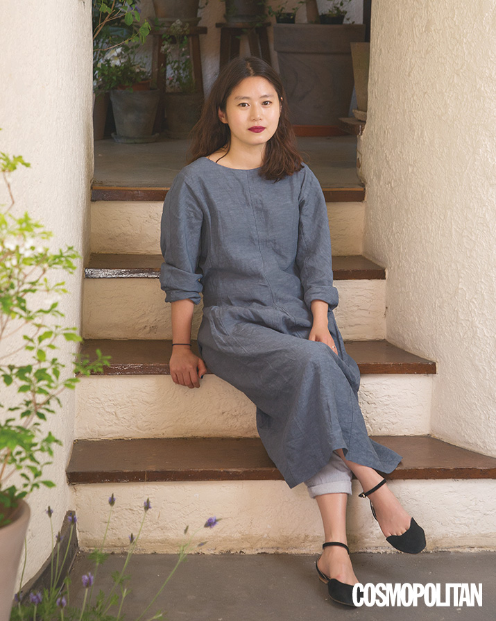 가장 그녀다운 공간에서 자연스럽게 포즈를 취한 모습.