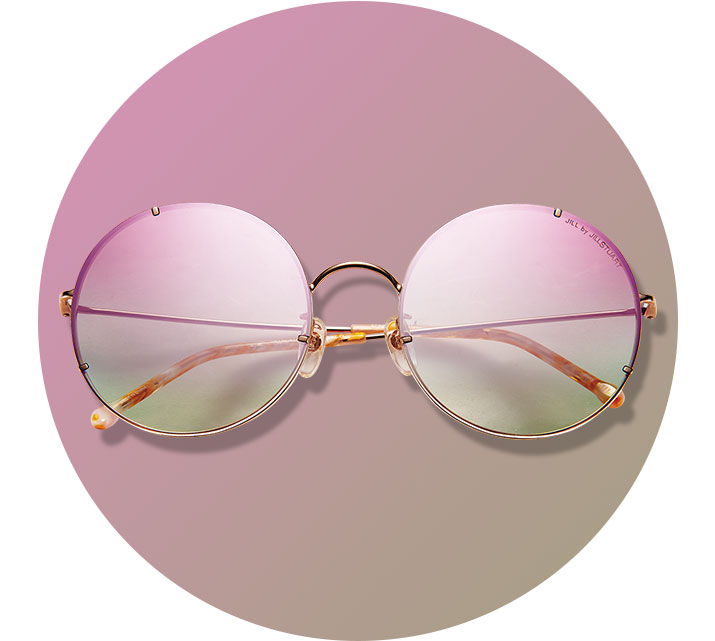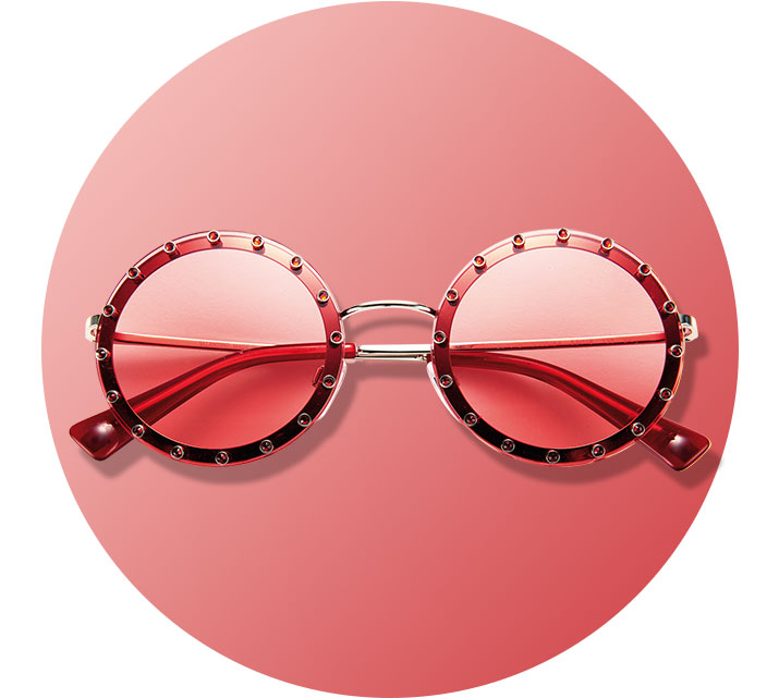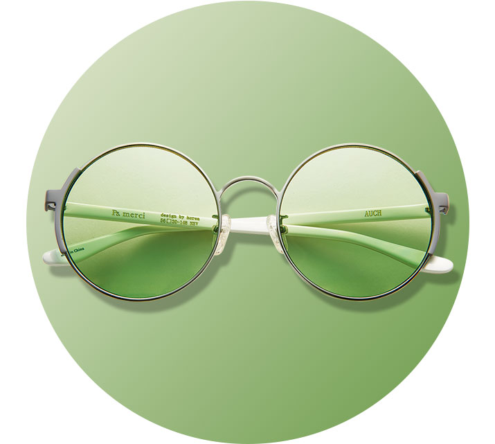 사랑스러운 보헤미안 무드를 연출해주는 라운드 선글라스. 핑크부터 그린과 블루에 이르기까지 다채로운 컬러 렌즈가 더해져 매력을 한층 살려준다. 깅엄 체크 아이템과 경쾌하게 매치해도 좋고 70년대 히피 스타일 룩에도 그만!