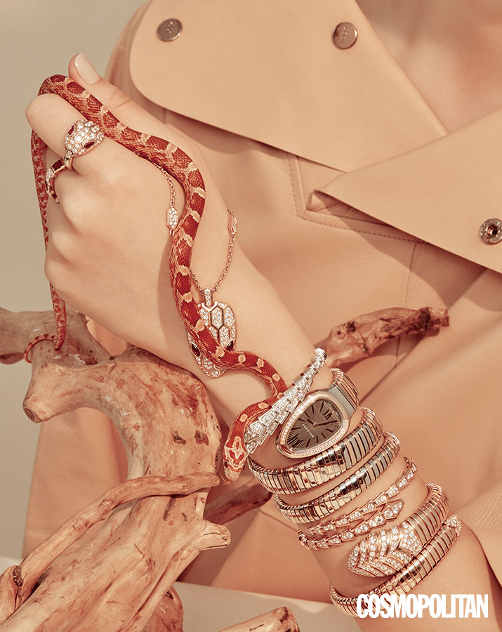 BULGARY 서양에서 뱀은 단지 무서운 존재가 아니라 지혜와 장수를 의미하는 영물. 뱀을 모티브로 만든 불가리의 세르펜티 컬렉션을 피부에 감으면 뭘 좀 아는 여자처럼 보이는 건 그 때문이다.