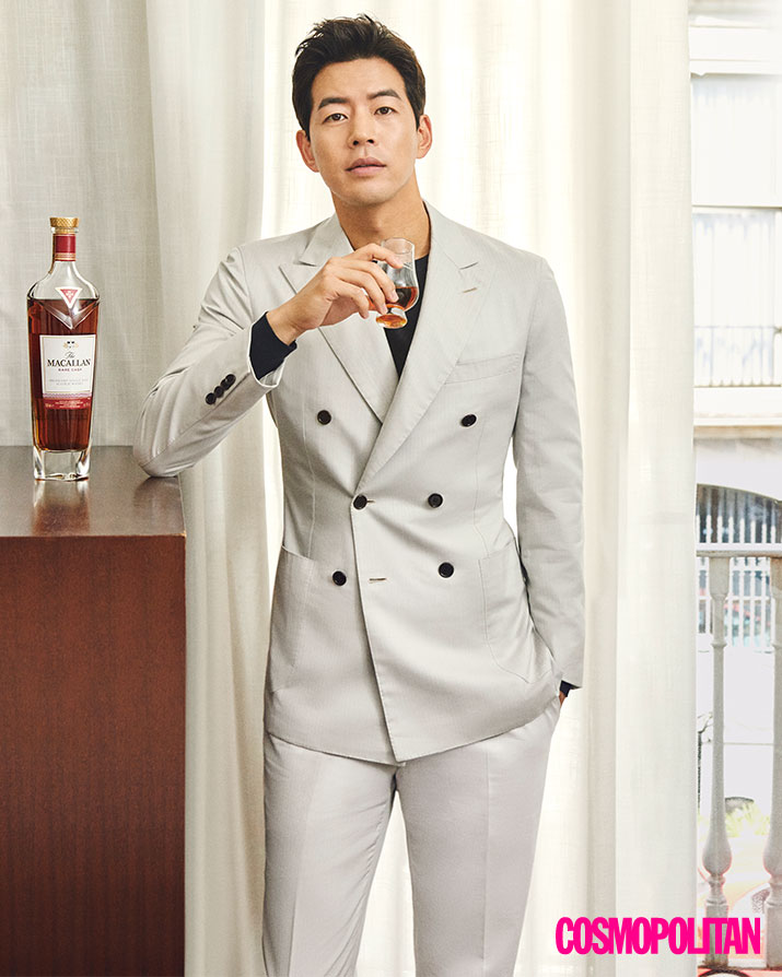 슈트 8백50만원, 니트 톱 98만원 모두 브리오니. 싱글 몰트 맥캘란 레어캐스크 700ml 가격미정 맥캘란.