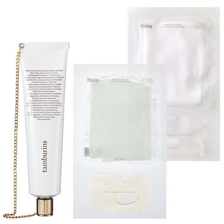 (왼쪽부터)탬버린즈 누드에이치 앤드크림 2만6천원. 헉슬리 마스크; 오일 앤 익스트랙트 3개입 2만7천원. 헉슬리 마스크; 글로우 앤 브라이트니스 3개입 3만3천원.