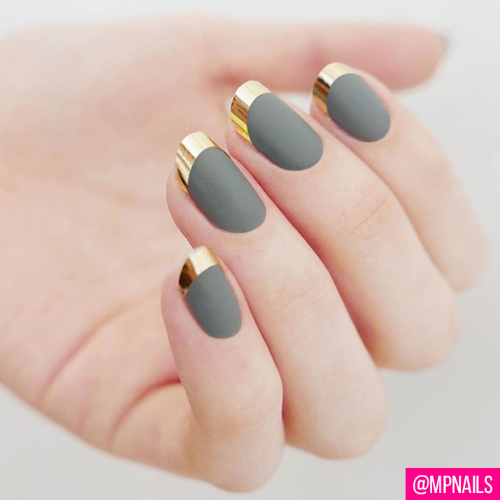 매트한 컬러를 베이스로 바른 뒤 네일 끝 부분만 크롬 테이핑으로 마무리해볼 것. 심플하면서도 에지가 훅!사는 스타일이 완성된다.
