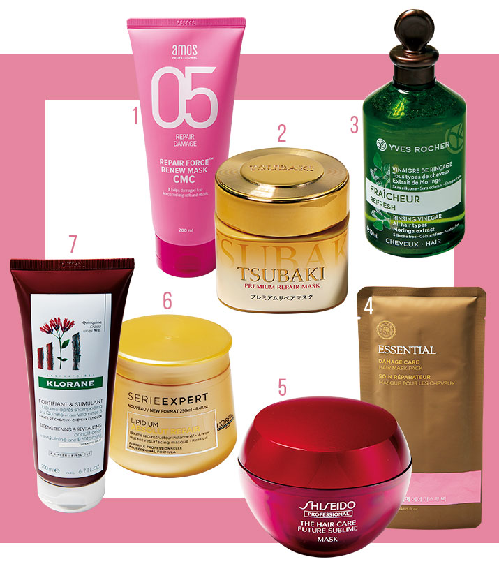 1 아모스 리페어포스 리뉴 마스크 CMC 가격미정 모발 아미노산 10종과 콩 단백질을 함유해 모발에 영양을 집중 공급해준다.