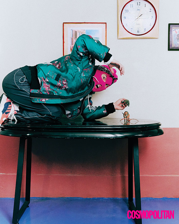 정체를 숨기는 데 가장 저렴한 도구가 복면이었다. 하하. 물론 덥고 땀띠도 많이 나고 피부도 안 좋아진다. 그럼에도 복면을 쓰는 건 그것이 마미손의 예술적인 장치이자 놀이이기 때문이다. 그리고 은유다. 하나의 커다란 메타포로 봐주면 좋겠다.