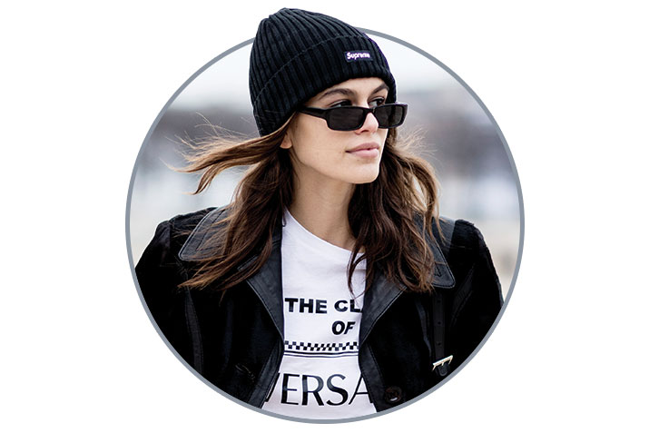 패셔너블 스타일에 비니를 빼놓을 수 있을까? 요즘 가장 핫한 모델 카이아 거버는 블랙 비니에 굵은 컬이 들어간 내추럴 헤어를 매치해 쿨 걸 이미지를 연출했다. 무심하게 툭 얹어 쓴 선글라스까지 그야말로 센 언니 포스~.