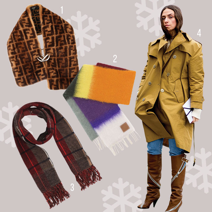 A 매년 겨울이면 꼭 찾게 되는 머플러. 블랙과 그레이 등의 울 머플러는 자주 손이 가는 만큼 매치하기도 쉽고 활용도 면에서도 만점이죠. 하지만 올해는 새로운 스타일에 도전해보면 어떨까요? 스트리트의 패션 피플들처럼 비비드한 컬러에 발목까지 내려오는 긴 머플러 같은 것 말이에요. 스타일에 비타민 같은 역할을 해서 기분까지 좋아지죠. 또 하나의 트렌드는 풋볼 머플러예요. 베르사체가 이끄는 이 트렌드는 과감한 믹스매치를 즐기는 이들에게 딱이에요. 오버사이즈 코트에 풋볼 머플러 하나만 더하면 전혀 다른 느낌을 주니까요. 아우터보다 저렴한 가격으로 스타일을 바꿀 수 있는 머플러 몇 가지를 지금 미리 구비해놓으면 겨울이 끝날 때까지 든든할 거예요.