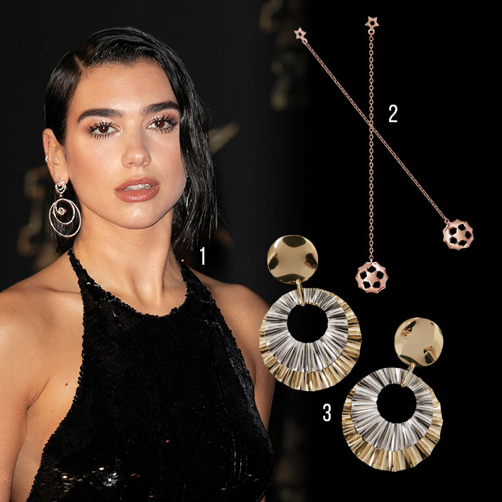 1 볼드한 이어링으로 포인트를 준 두아 리파. 2 28만원 골든듀. 3 43만8천원 이자벨 마랑.