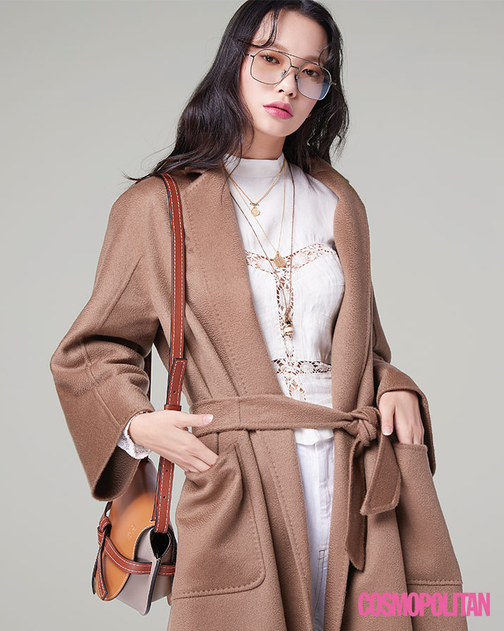코트 7백68만원 막스마라. 블라우스 75만원 이자벨 마랑. 화이트 팬츠 41만7천원 이자벨 마랑 에뚜왈. 안경 24만9천원 프로젝트 프로덕트. 목걸이 (위부터)7만원, 8만원 모두 마마카사르. 1백5만원 디올. 숄더백 2백60만원 로에베.