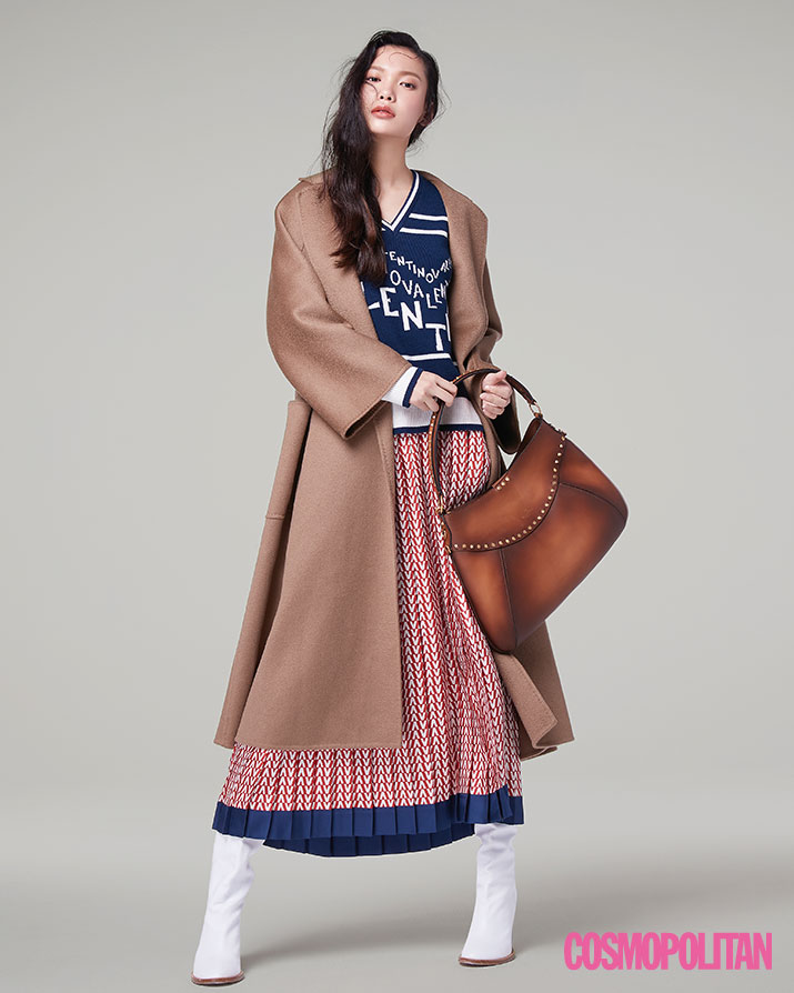 코트 7백68만원 막스마라. 니트 톱 1백94만원, 스커트 2백63만원 모두 발렌티노. 백 2백95만원 발렌티노 가라바니. 롱부츠 1백40만원대 포츠1961.