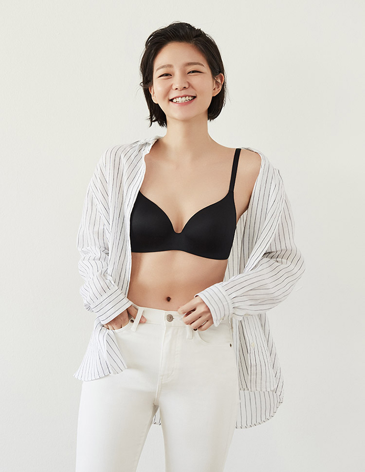 TV 프로그램 <수요미식회>의 멤버로 합류했다. 원래 식문화에 관심이 많나? 맞다. 예전부터 먹는 걸 좋아했다.(웃음) 최근 들어 요리도 시작했는데 점점 더 자연스럽게 식재료에 관심이 가고, 음식에 담긴 이야기들에도 주의를 기울이게 된 다. 음식 외에 또 좋아하는 건? 영화! 예전부터 영화를 볼 때 마다 생각을 메모해두곤 했는데 좀더 영화 관련 공부를 하고 싶어 강좌들을 알아보고 있다. 좋아하는 것에 깊이와 전문성을 더하고 싶다. 실제로 만나니 더욱 활동적인 에너지가 느껴진다. 보통 하루를 어떻게 보내나? 요즘 거의 종일 일만 한다. 그렇다면 브라를 착용하는 시간도 길겠다. 맞다. 잘 때 빼고 항상 착용하니까, 16시간 정도? 그렇다면 특히 더 섬세하게 고를 것 같은데. 딱 맞는 브라를 만나는 건 이상형을 만나는 것만큼이나 힘든 것 같다.(웃음) 편하고, 통풍도 잘되면서, 탄탄하게 보디라인을 잡아줘야 하니까. 모든 걸 다 갖춘 브라를 찾기란 정말 어렵다. 공감한다. 그중 가장 중요한 부분은 무엇인가. ‘핏’. 브라가 실루엣을 잘 잡아주지 못하면 어떤 옷을 걸쳐도 덜 예쁘다. 그런데 이 부분에 주의를 기울이면 편안함을 포기해야 할 때가 많아서 아쉽곤 했다. 유니클로의 새로운 브라는 어떻던가? 무엇보다 내 가슴의 실루엣을 아름답게 표현해주어 옷태를 잘 살려준다. 컵이 내 가슴을 완벽하게 감싸 모양을 잡아주는 느낌이랄까. 브라의 역할이 중요한 타이트한 상의와 매치했을 때 특히 그렇다고 느꼈다. 그런데 심지어 매우 가볍다! 장시간 착용해도 답답하지 않다. 평소 패션 스타일과 이 브라가 잘 어우러질 것 같나? 물론이다. 라인을 잡아주는 심플한 디자인이다보니 얇은 니트나 실크 드레스와 함께 입으면 참 잘 어울릴 것 같다.