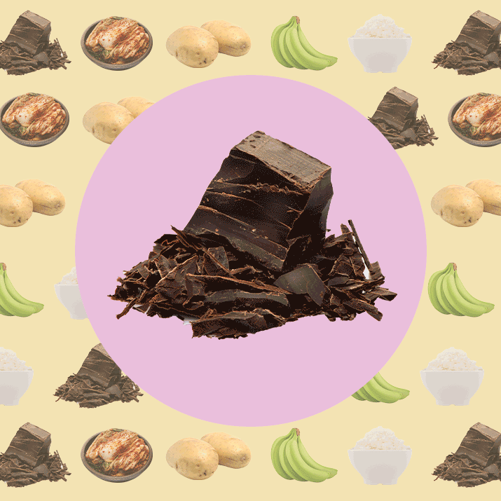 프로바이오틱스가 풍부하진 않지만, 장내 유산균이 위장을 통과할 때 분해되지 않도록 코팅하는 역할을 한다. 초콜릿이 보호한 유산균은 소화 작용을 돕고, 항산화 물질을 흡수한다.
