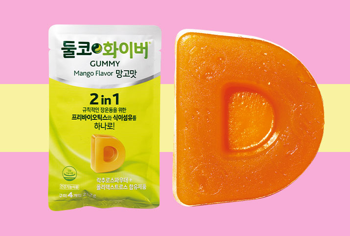 THEY SAY 장속 유익균의 먹이가 되는 프리바이오틱스와 식이섬유를 하나로 담았다. 합성 착색료와 설탕을 쓰지 않은 진짜 망고 맛 구미. 건강한 장 환경을 만들어 원활한 배변 활동을 도와준다.