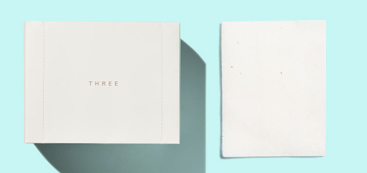 도톰하면서 감촉이 부드러운 소재라 피부에 자극이 적은 화장솜. 토너를 듬뿍 적셔도 축 처지지 않는다.
