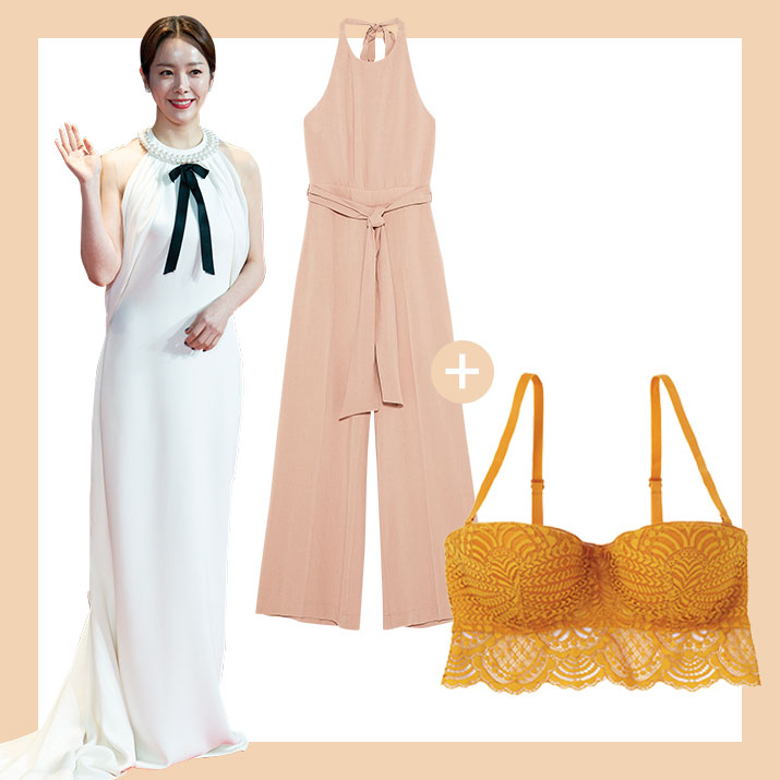 홀터넥 의상에는 스트랩이 탈착되고, 가슴 아래까지 잡아줄 수 있는 브라를 선택하자.