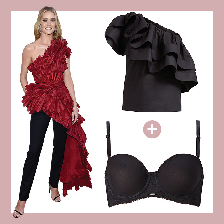 스트랩이 없으면 안정감이 떨어진다. 한쪽 어깨 스트랩을 뗄 수 있는 1/2컵 브라를 활용하자.