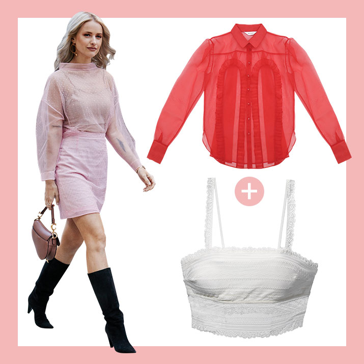 속이 훤히 비치는 시스루 의상이 입고 싶지만 노출이 부담스럽다면? 일자 라인의 브라렛을 매치하자.
