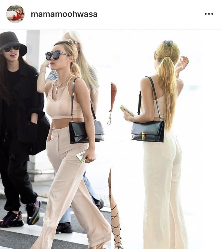 (출처:화사 인스타그램) 노브라(심지어 완전 노브라도 아니고 패드를 댄 듯 보이는)로 뜨거운(?) 반응을 불러온 화사의 공항 패션.