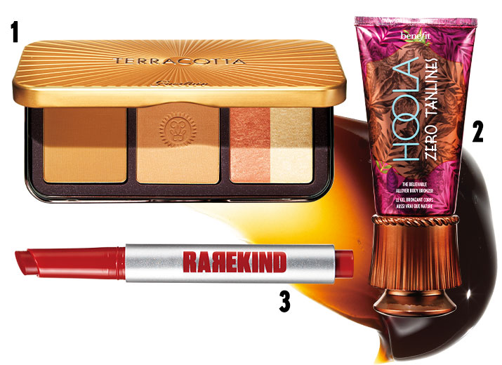 1 겔랑 테라코타 컨투어 앤 글로우 팔레트 9만4천원. 2 베네피트 제로 탠 라인 4만3천원. 3 레어카인드 엑스-마크 틴트 스틱 05호 레드 피스톨스 1만8천원.