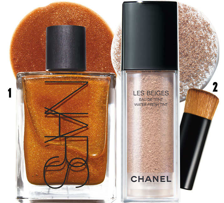 1 나스 모노이 바디 글로우 8만6천원. 2 샤넬 레 베쥬 워터-프레시 틴트 라이트(브러시 포함) 9만5천원.