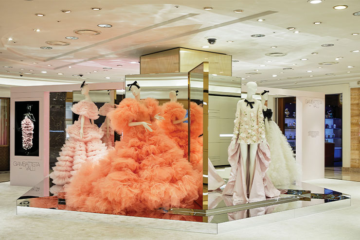 하나의 예술 작품 같은 오트 쿠튀르는 보는 것만으로도 황홀하다. 정교하고 드라마틱한 실루엣으로 사랑받는 지암바티스타 발리의 오트 쿠튀르 의상을 직접 볼 수 있는 전시가 압구정 갤러리아 백화점에서 열렸다. 튤과 레이스가 켜켜이 쌓인 볼륨감 넘치는 드레스, 레이스와 플라워 모티브가 섬세하게 새겨진 드레스 등 장인 정신이 돋보이는 의상들은 더없이 로맨틱하고 환상적인 시간을 선사했다.