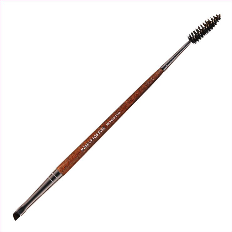 사선 커팅된 브러시와 스크루 브러시로 구성된 듀얼 타입. 모가 뻣뻣하고 단단한 재질이어야 오래 쓸 수 있다. 스크루 브러시로 눈썹을 가지런히 쓸어준 뒤 사선 브러시에 눈썹 포마드나 파우더를 묻혀 눈썹의 형태를 만들고 빈 곳을 그리듯 채운다. 사선 브러시 모가 탄력이 좋은 편이라 젤 아이라이너를 그릴 때 활용해도 좋다.
