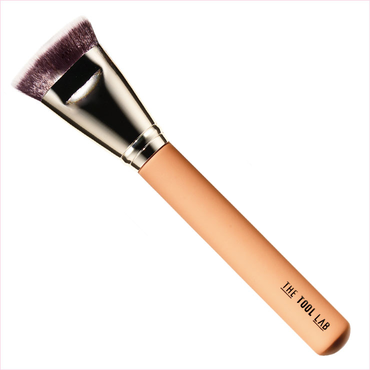 눕히지 않고 세워 사용하는 브러시. 납작한 형태에 비해 결 자국이 거의 남지 않는다. 짧게 깎인 빼곡한 인조모가 적당한 양의 파운데이션을 머금어 아무 방향으로나 쓱싹쓱싹 바르면 파운데이션이 균일하게 피부에 밀착된다. 피부에 닿는 하얀 모의 단면이 부드러운 스펀지처럼 느껴져 밀착력이 뛰어나고, 힘 조절을 하지 않아도 붓이 지나간 흔적 없이 매끈하게 커버된다.