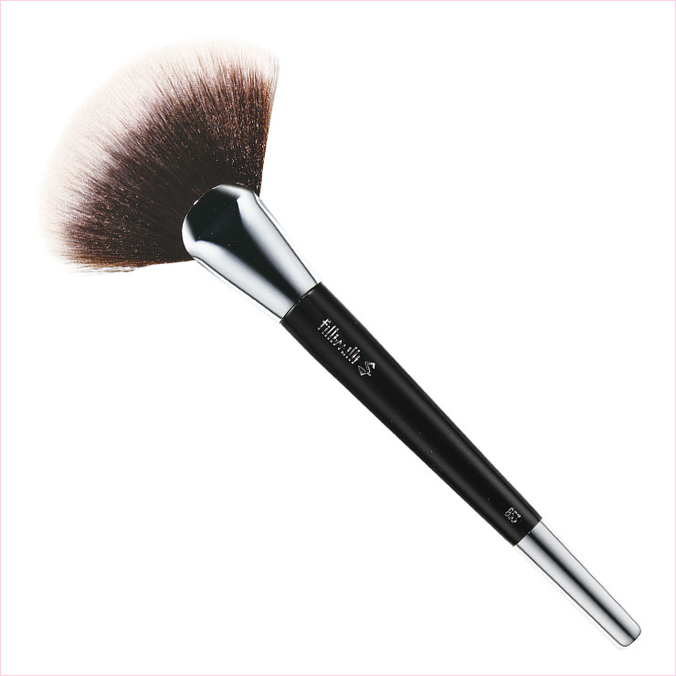 메이크업의 완성도 한 끗 차는 마지막 터치업에서 결정된다는 사실! 이때 필요한 게 부채꼴 모양의 팬 브러시다. 메이크업 마무리 단계에서 이마와 콧등, 뺨에 은은한 광채를 더하는 건 물론, 눈 밑에 떨어진 펄 등 잔여물을 털어내는 데 유용하다.