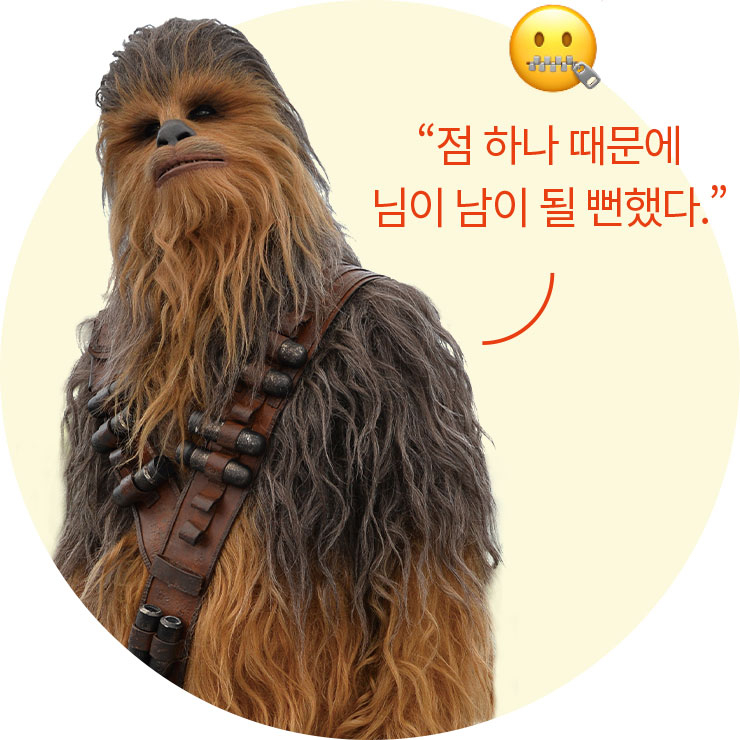 블라인드 사이로 비치는 따사로운 볕을 맞으며 눈을 떴다. 쌔근쌔근 잠든 여친 C의 모습이 예뻐 턱을 괴고 누워 한참이나 그녀의 얼굴을 바라봤다. 나는 아침부터 로맨티시스트라도 된 것처럼 C의 머리를 쓰다듬고 귀 밑으로 삐져나온 잔머리를 매만졌다. 그녀의 하얀 목덜미로 손을 가져가는 순간 손끝에서 볼록 튀어나온 뭔가가 만져졌다. 평소엔 긴 머리에 가려 보이지 않았는데, 목에 오서방같이 커다란 점이 있었던 것이다. 난생처음 보는 큰 점에 눈이 휘둥그레진 찰나, 점을 뚫고 나온 털 한 가닥이 눈에 들어왔다. 겨드랑이 털처럼 유난히 길고 꼬불한 털이 메마른 사막의 한 줄기 꽃처럼 피어 있었다. 순간 망치로 머리를 두드려 맞은 것같이 잠이 확 깼다. 내겐 너무 예쁜 그녀지만, 가끔은 돼지 꼬랑지 같은 그 털이 보일 때마다 두 눈을 질끈 감게 된다. - 그녀는츄바카, 29세