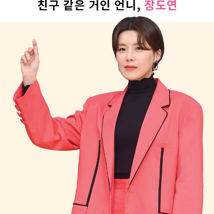 외동인 나는 친구 같은 언니를 둔 사람들이 부러울 때가 있다. 이 감정을 해소해줄 수 있는 사람은 나처럼 외동으로 자란 장도연이다. 그녀는 애완 고슴도치 ‘츄’와 직접 키우는 콩나물도 섬세하게 대한다. 미친 입담으로 심심할 새도 없는 건 물론이고 토익 점수로 대학까지 간 ‘뇌섹녀’라 내 영어 실력까지 책임져줄 것 같은 든든함이 느껴진다. 이 언니야말로 전국 외동딸들의 ‘워너비 언니’ 아닐까? - 외동딸내미(25세, 회사원)